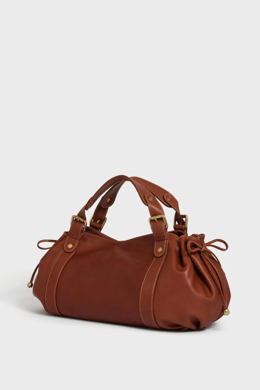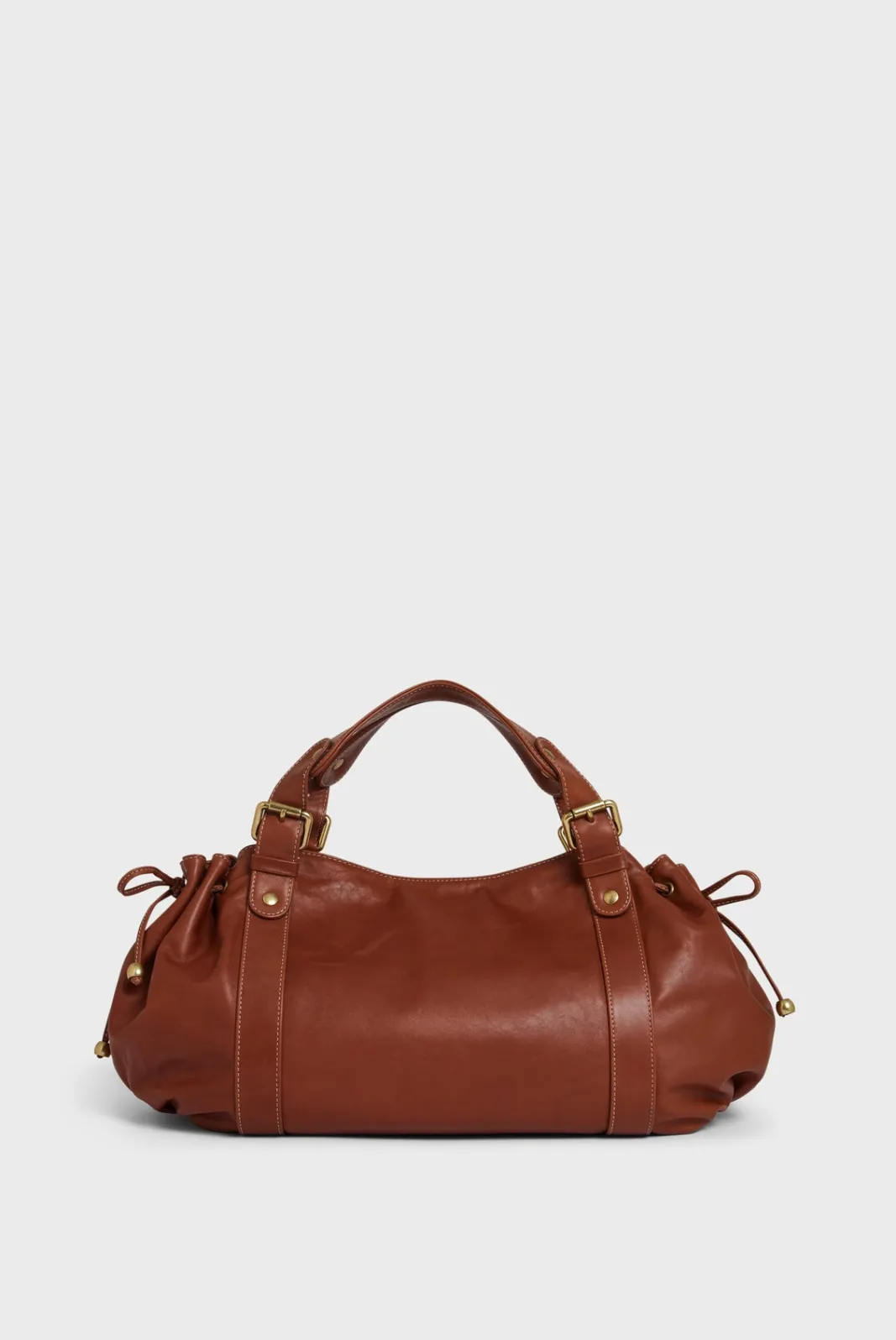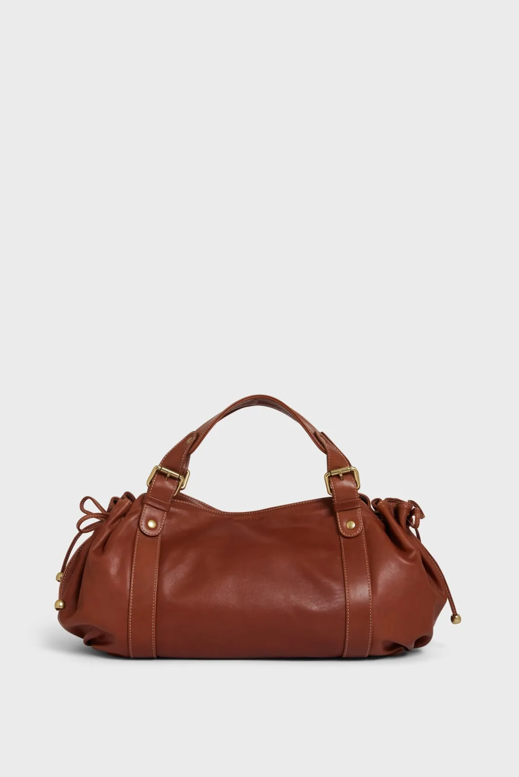 - – Bag gathered on the sides by two leather links, wrapped in body bands