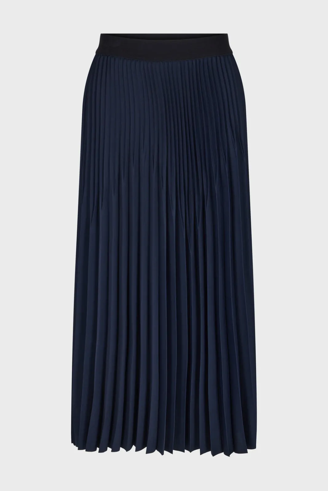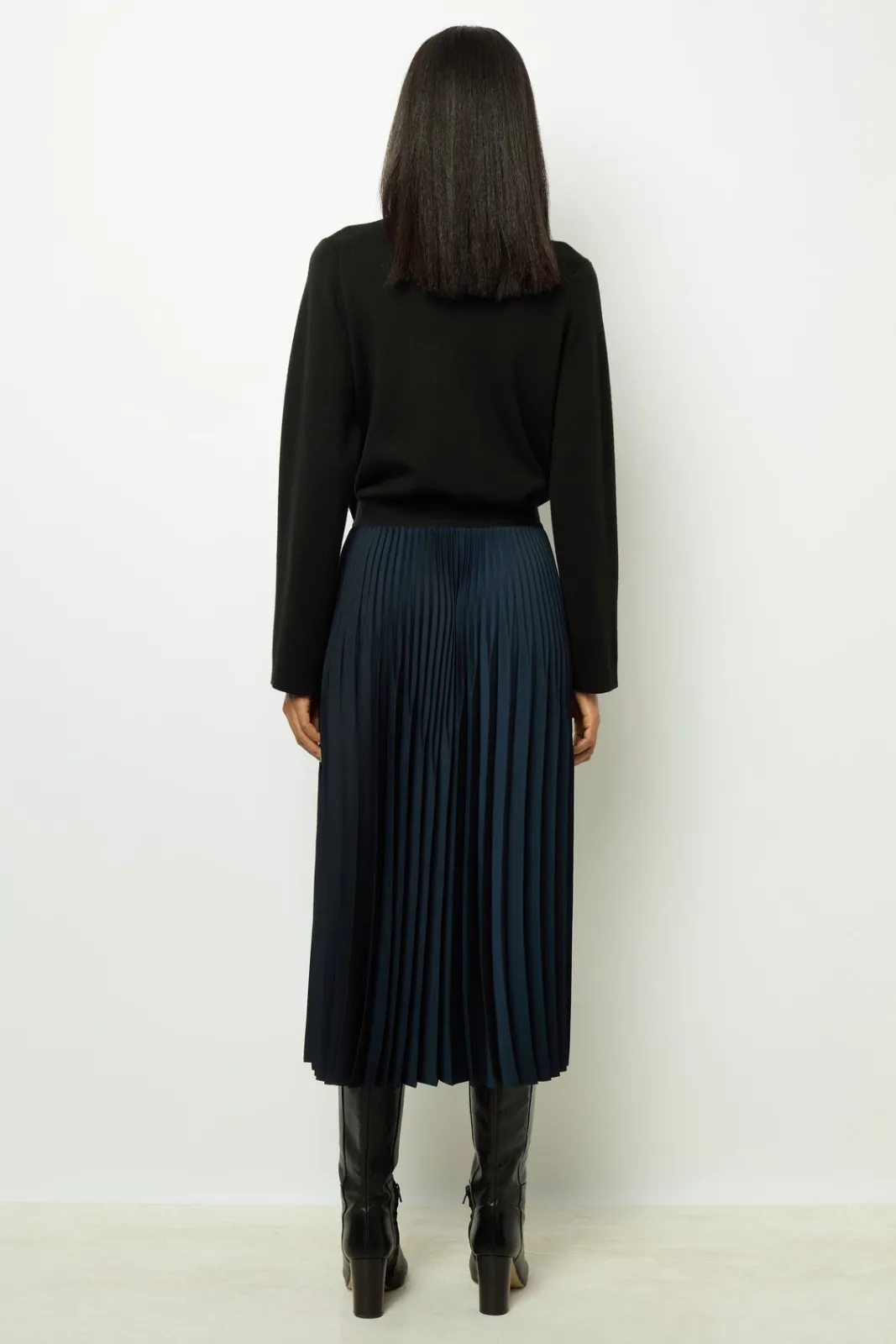 Plain pleated midi skirt with a satiny appearance.-Pleated-Plain fabric-Midi-Elasticated waist-The model is 174cm tall a…