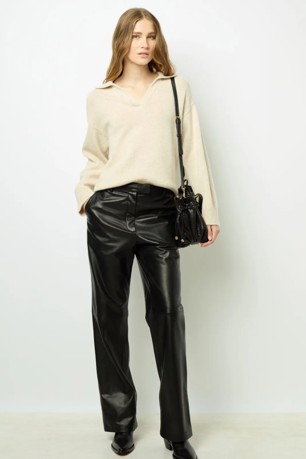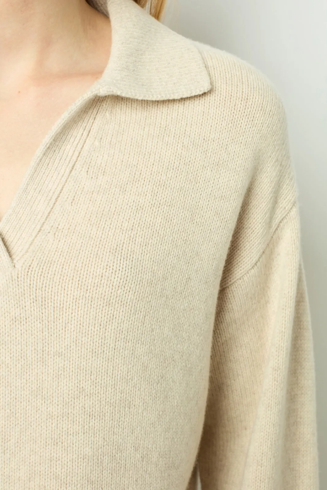 100% plain wool pool shirt for casual style.-Straight cut-Plain wool-Standard length-Dropped sleeves-Polo collar-Long sl…