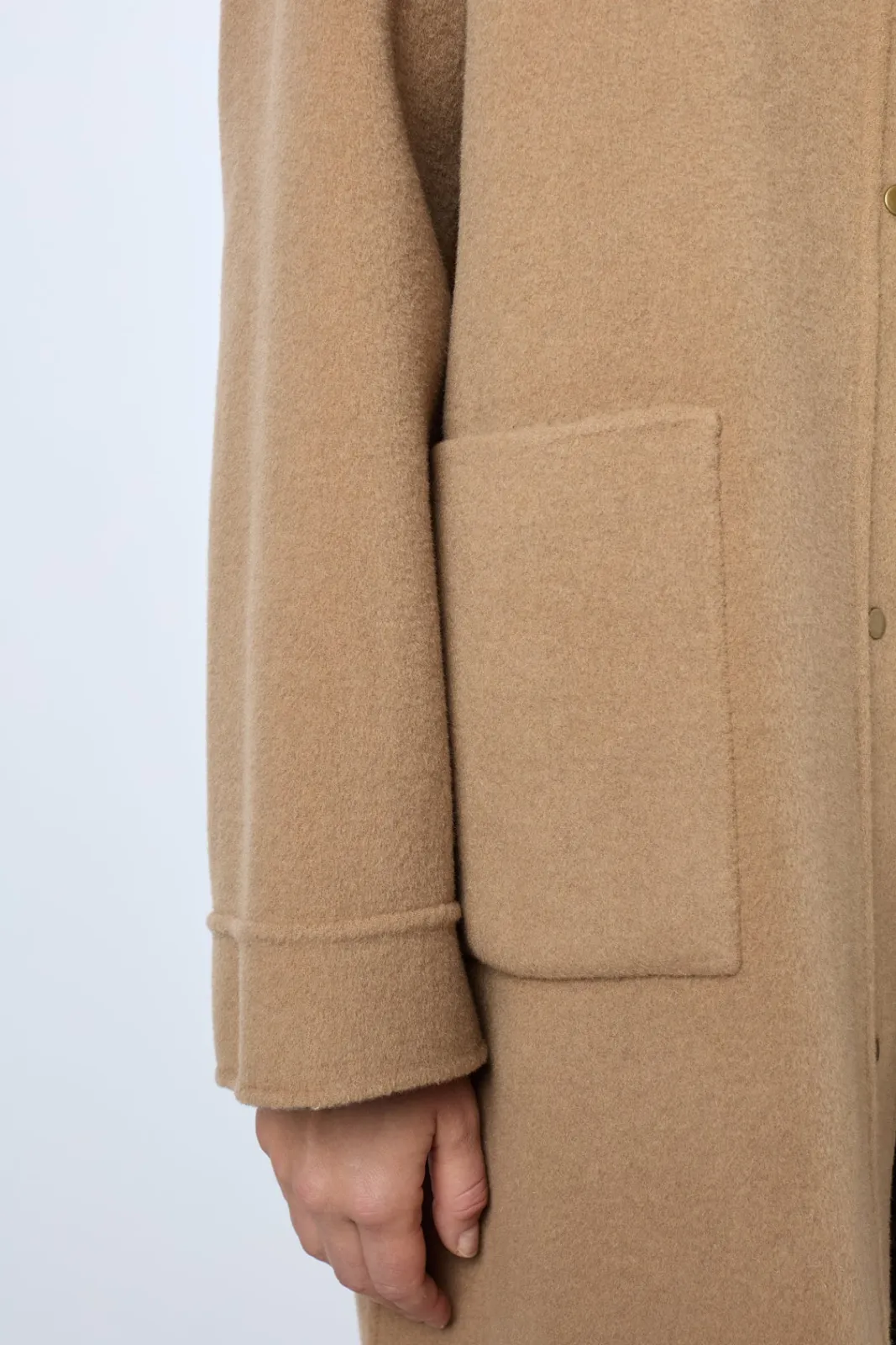 - – Coat fastened with snap studs