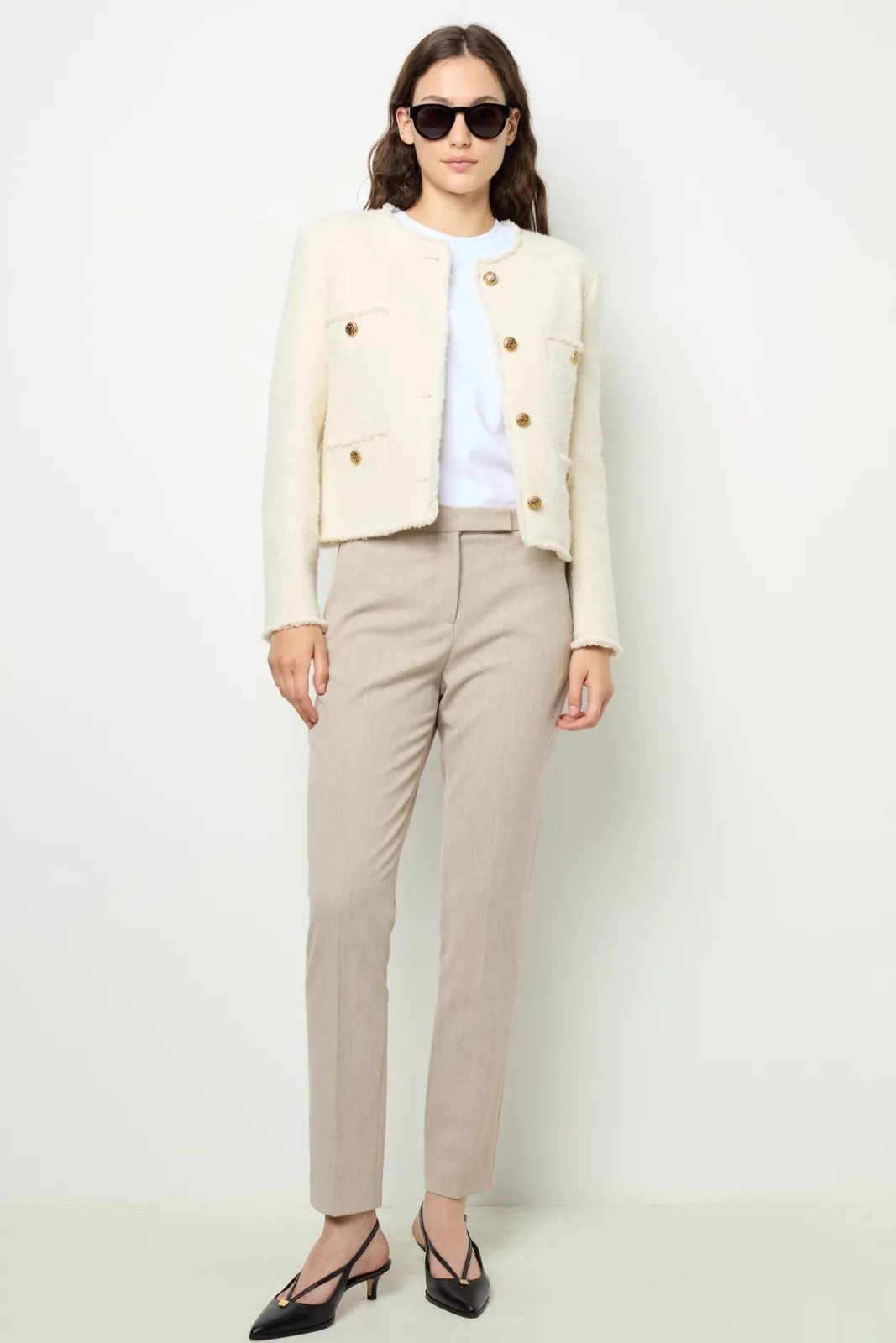 Tailored sand-colored trousers with an elasticated back for added comfort.