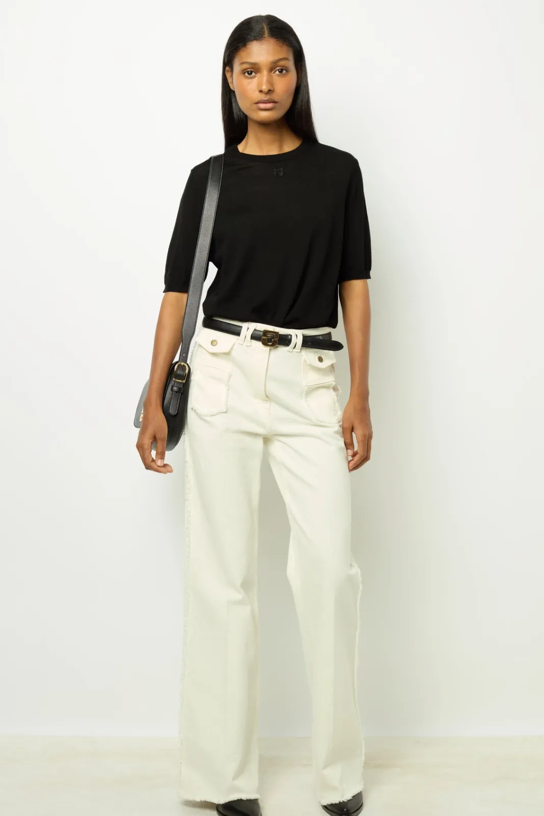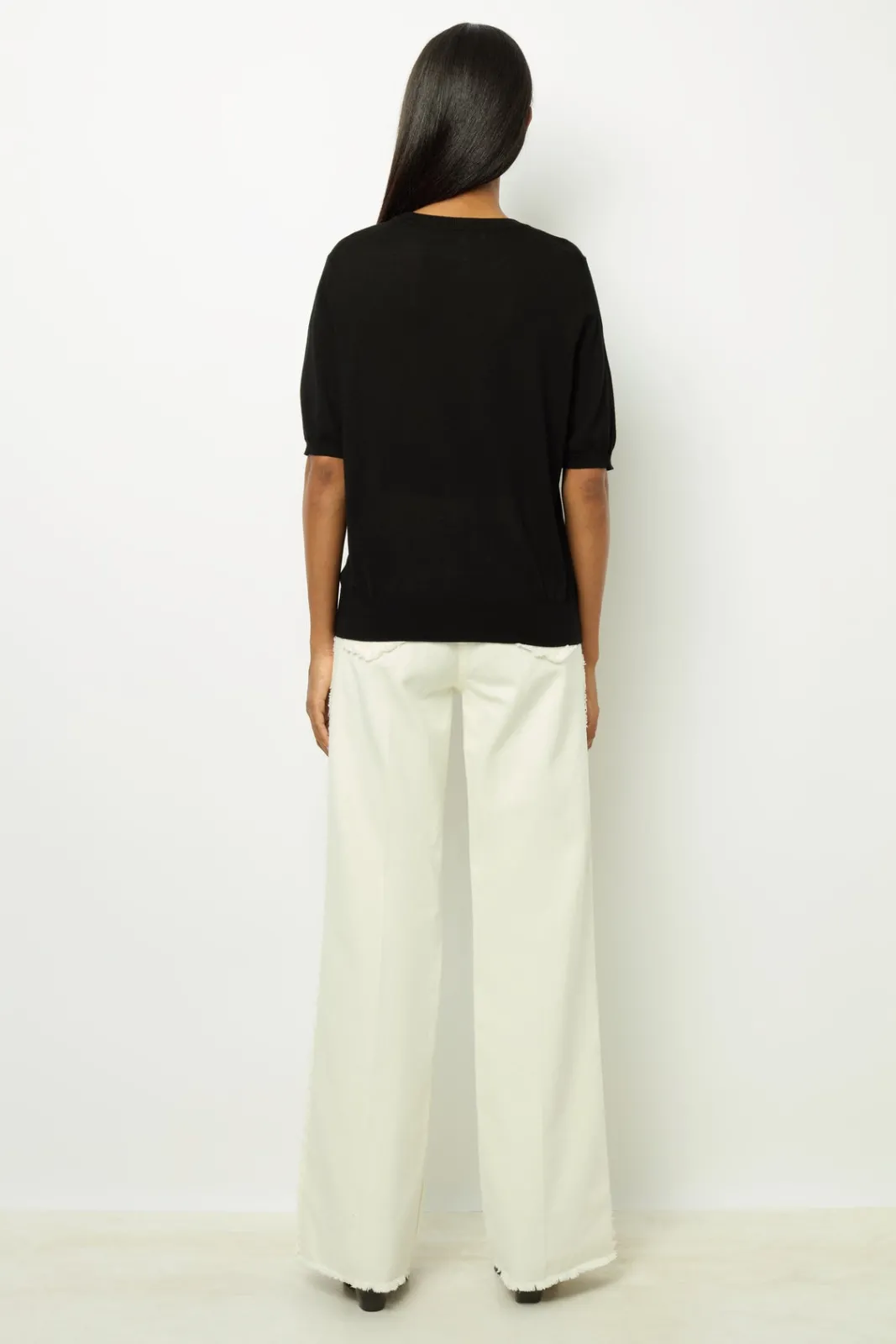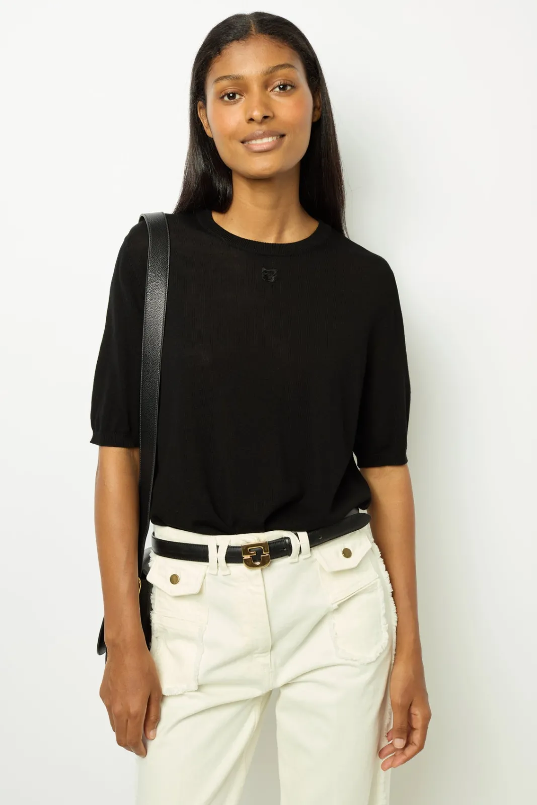 Fine wool short-sleeved sweater with the GD Monogram embroidered at the neckline. Pair with the matching cardigan as twin set. 100% wool.