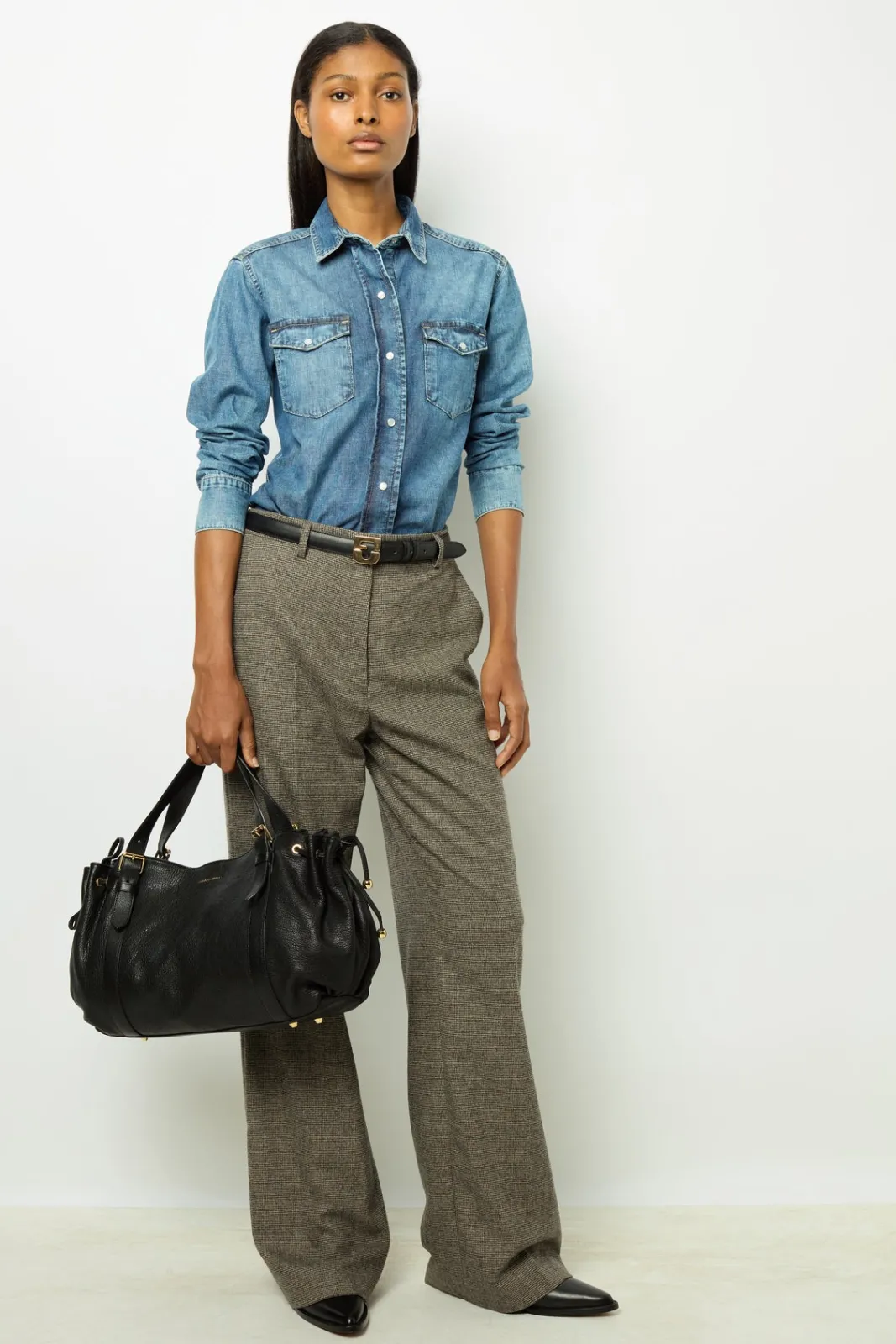 Wide-leg pants with micro houndstooth pattern in a wool blend.