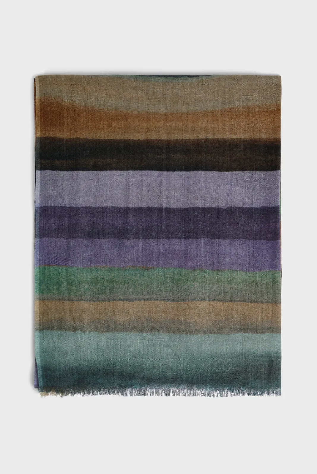 Scarf with large multicolored stripes. Mostly wool with a touch of silk.70x180cm-Rectangular-Striped-Slightly fringed ed…